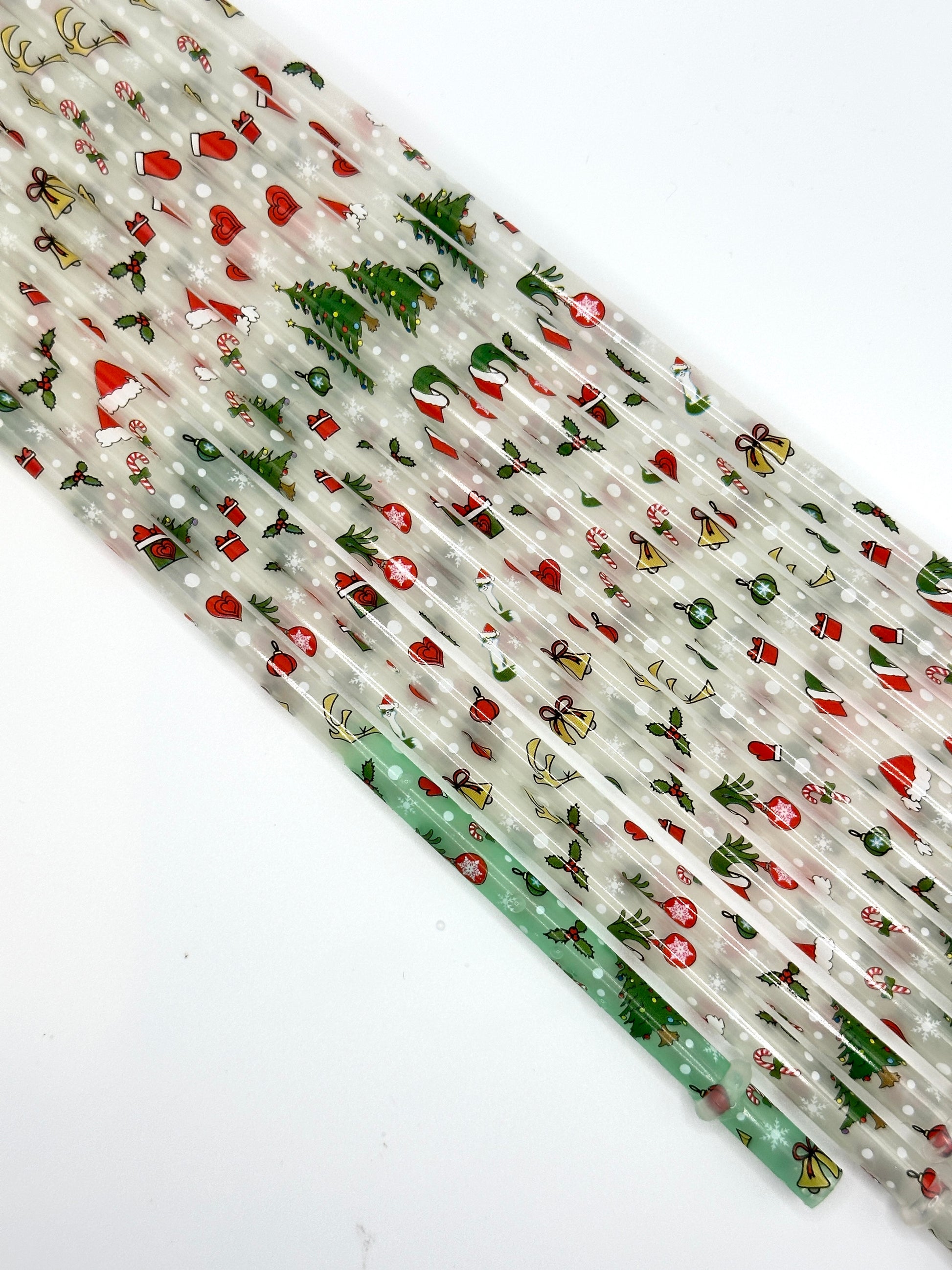 10" Christmas Reusable Plastic Straws (Colour Changing Clear to Green)