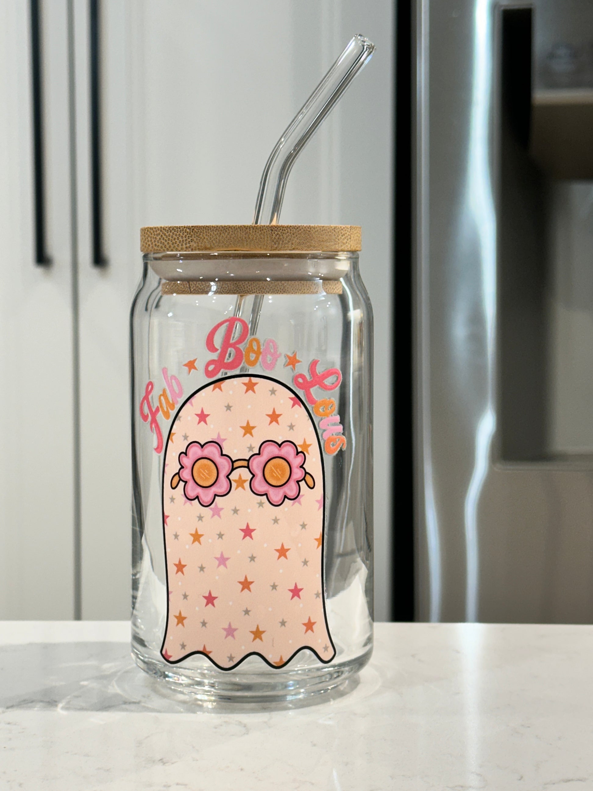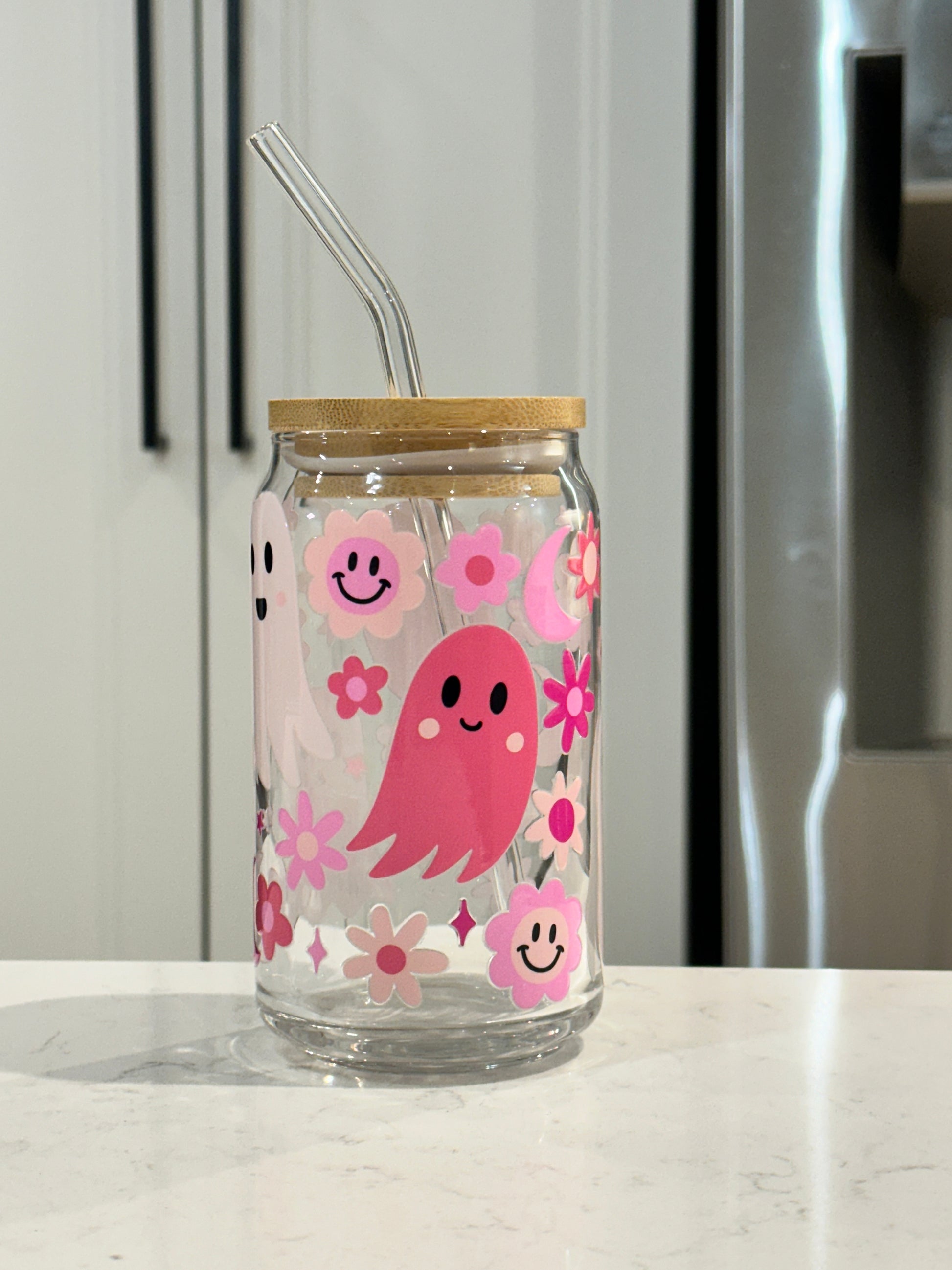 16oz libbey glass with UVDTF permanent waterproof decals. Includes bamboo lid and clear glass straw. LIMITED STOCK! Will not restock.